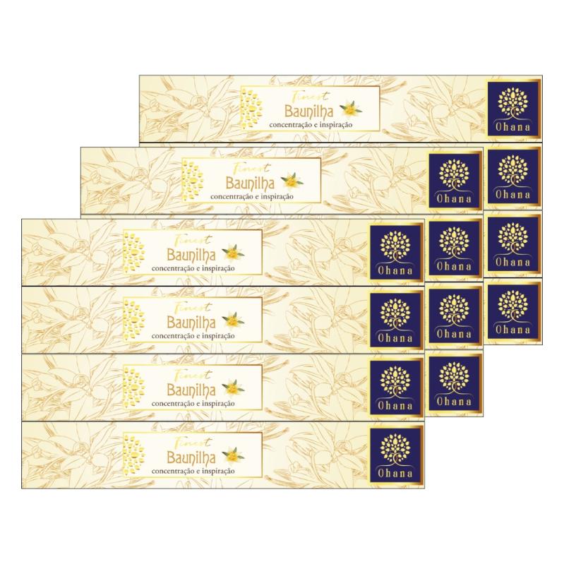 'descricao' => 'Incenso Ohana Finest BAUNILHA - Concentração e Inspiração. Dá um cheiro delicioso á nossa casa. Esta relacionada com a inteligência, com os pensamentos e com as habilidades da mente. É ideal para aqueles momentos em que necessitamos concentração e inspiração e também quando queremos acarinhar nossa criança interior, trazendo alegria e aconchego.